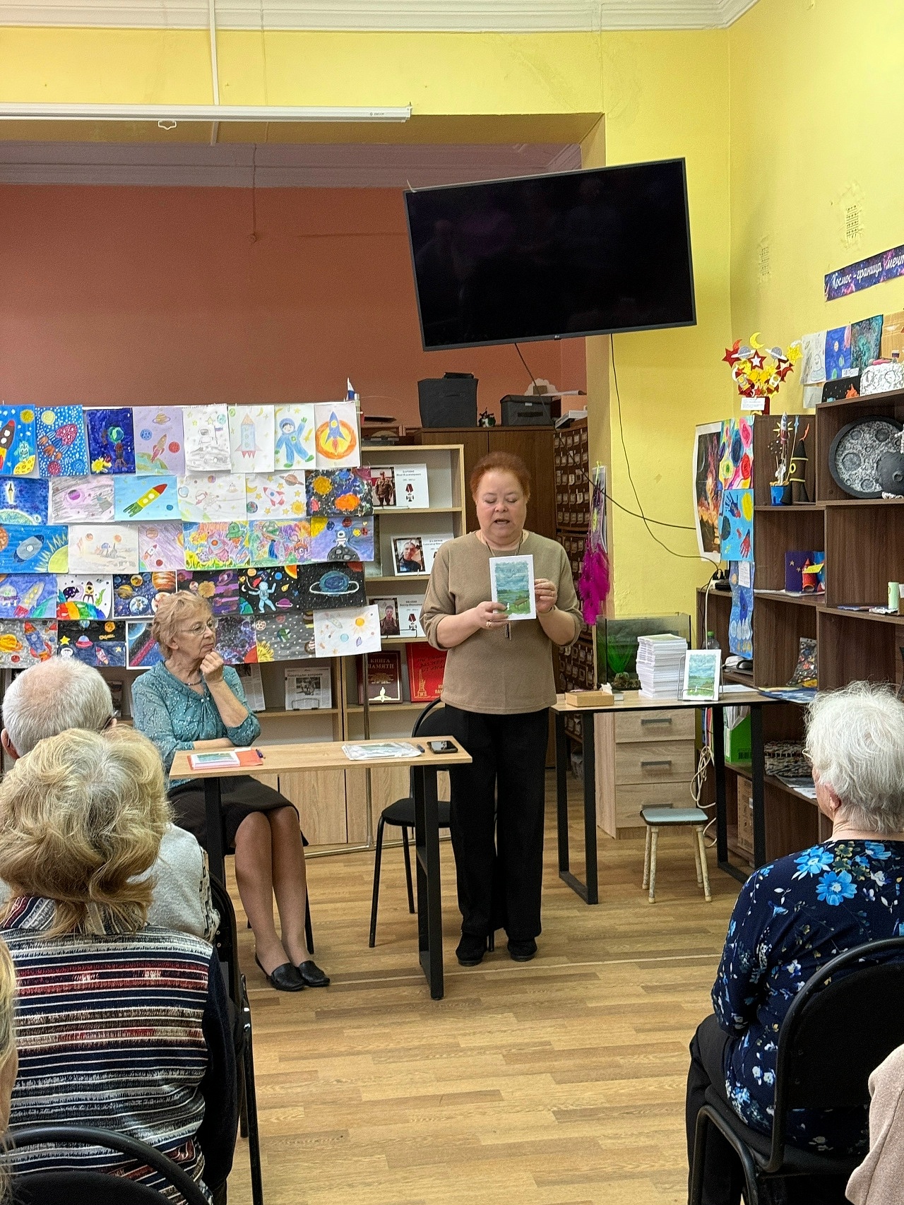 В рамках Всероссийской акции состоялось знакомство с новой книгой Альбины Каменевой «Возвращение к берегам». Напомним, первый поэтический сборник Альбины Леонидовны — «Берега» — был издан Онежской типографией в 2000 году. И вот, спустя двадцать шесть лет, читатели вновь встретились с автором, но уже в новом формате: «Возвращение к берегам» объединяет не только стихи, но и прозу. Гости познакомились с Каменевой-прозаиком: в книгу вошли трогательные рассказы о детстве, родной деревне, поездке в Архангельск, а также искренние и теплые «Рассказы свекрови». Особую атмосферу создало присутствие людей, ставших свидетелями описанных событий, — авторское чтение нередко перерастало в живой диалог с залом.