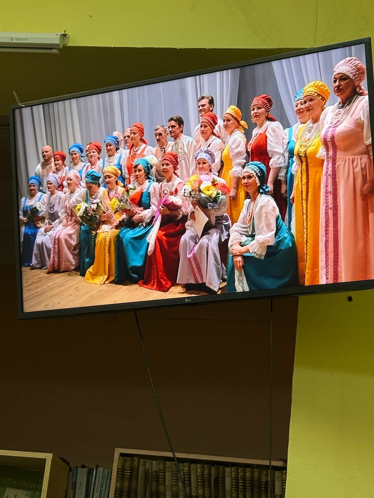 Однако кульминацией вечера стал невероятно душевный и глубокий разговор о песне и о судьбах людей, для которых она стала смыслом жизни. Ольга Николаевна, известная не только как художник, но и как внимательный документалист, представила зрителям три свои авторские киноленты. Особую значимость этому показу придавало то, что аудиторией в этот вечер был коллектив русского хора, чья жизнь неразрывно связана с темой фильмов. На большом экране один за другим оживали портреты удивительных женщин. Фильм «Я вернусь к вам с русской песней» был посвящён Эмме Степановне Кузьминой, бессменному руководителю Онежского академического хора. Документальная лента «Печаль неизбывная» познакомила зрителей с творчеством Клавдии Николаевны Ларионовой, создателя и руководителя фольклорной группы «Живой родник», чей репертуар включает свадебные, протяжные, шуточные хороводные и многие другие народные мелодии. Картина «Свой мотив», посвящённая Анне Борисовне Сапегиной и её хору русской песни, убедила, что у настоящего творчества всегда есть свой уникальный и неповторимый путь.